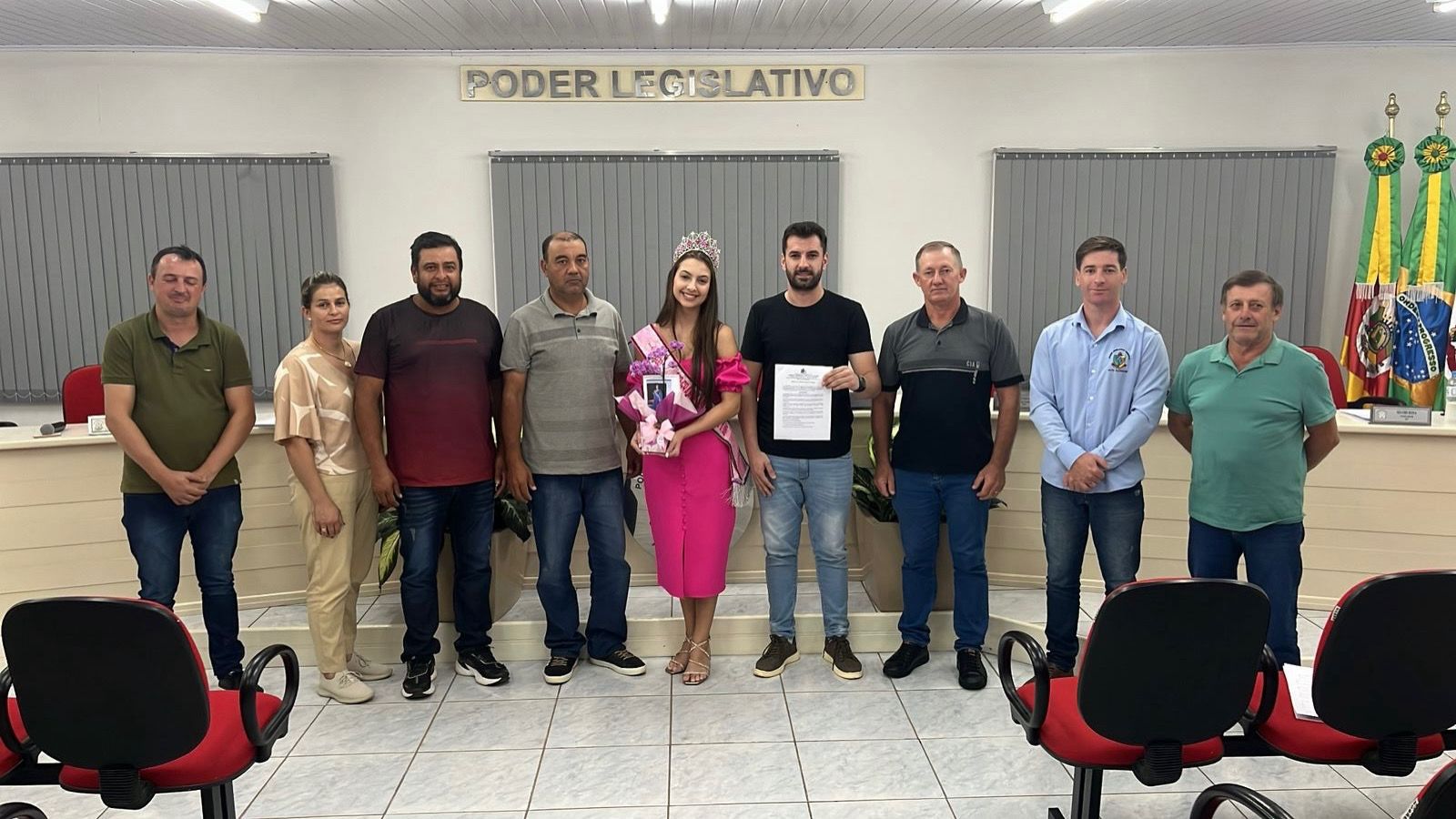A homenagem foi concedida à jovem Nicóli Vitória Maldaner Rosa, em reconhecimento à sua destacada participação no concurso Miss Diamond Rio Grande do Sul 2026, no qual representou com excelência o município de Alto Alegre.