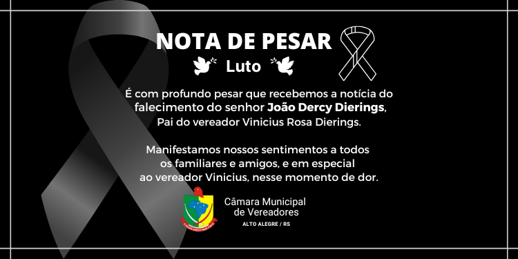 É com profundo pesar que recebemos a notícia do falecimento do senhor João Dercy Dierings, Pai do vereador Vinicius Rosa Dierings.